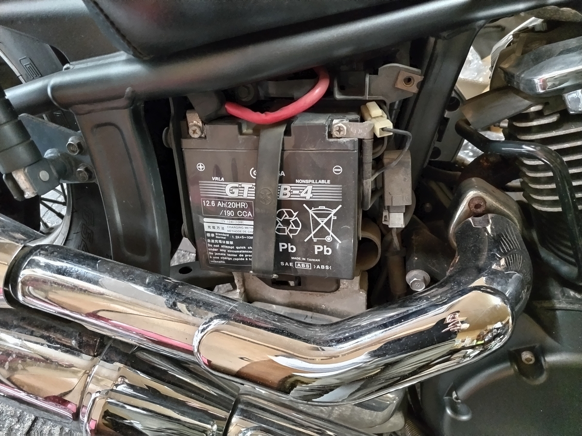ヤマハ、ドラッグスター1100のバッテリー交換中!